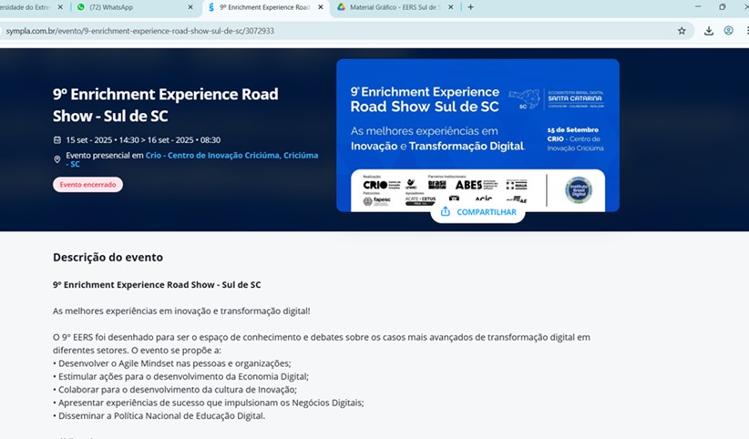 - SAVE THE DATE: Vem aí o 9º Enrichment Experience Road Show – Sul de SC! Publicado 18/08/2025 no link: https://www.instagram.com/p/DNgnrL7R03G/?hl=pt